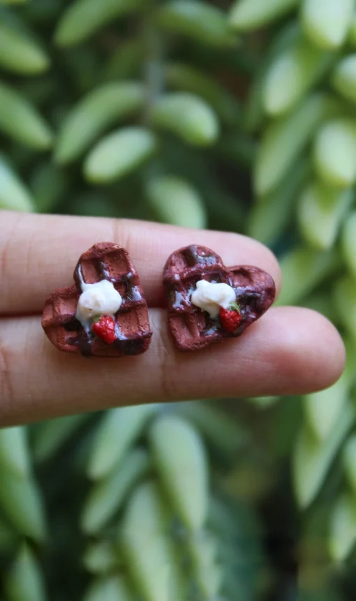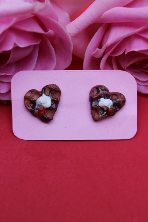 Chocolate Heart waffle studs | Realistic Polymer clay food I food accessories